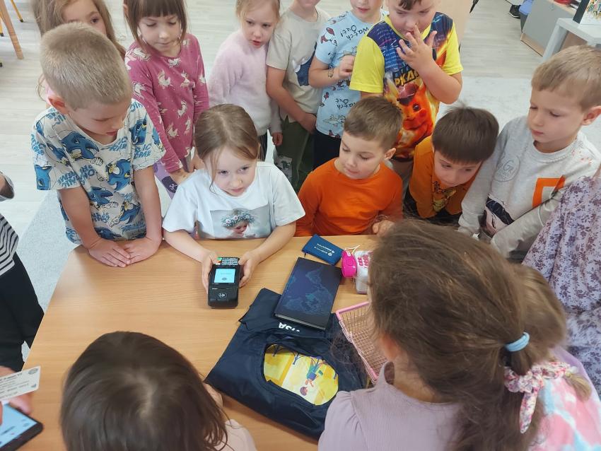 Spotkanie z mama Martynki. Dzieci poznały zasady bezpiecznego posługiwania się kartą płatniczą, samodzielnie dokonywały transakcji. Więcej zdjęć w zakładce galeria: Spotkanie z mamą Martynki - Jeże cz.II