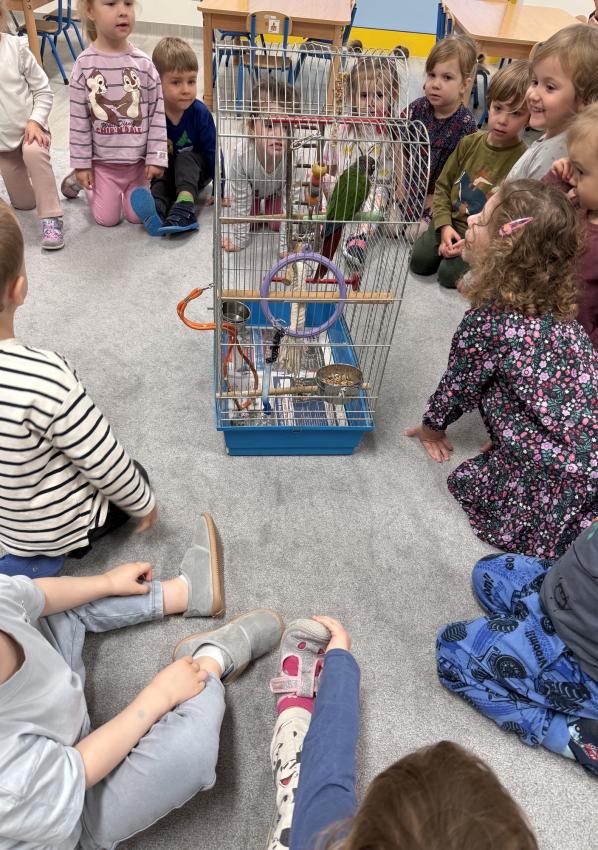 Spotkanie z Panią weterynarz i papugą o imieniu Harry. Dzieci dowiedziały się o jej upodobaniach , zwyczajach i sposobie odżywiania . Mogły z bliska obejrzeć papugę , podziwiać jej ubarwienie mocny dziob , pazurki. Więcej zdjęć w zakładce Galeria: Spotkanie z weterynarzem i papugą o imieniu Harry cz.II