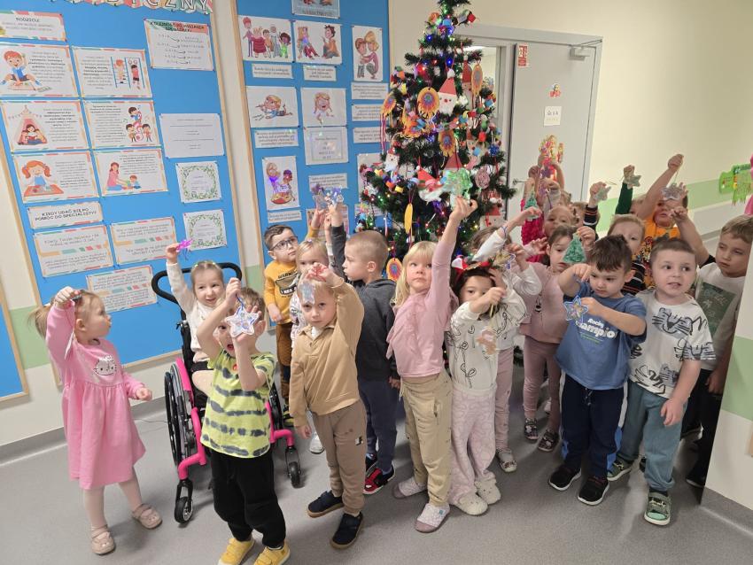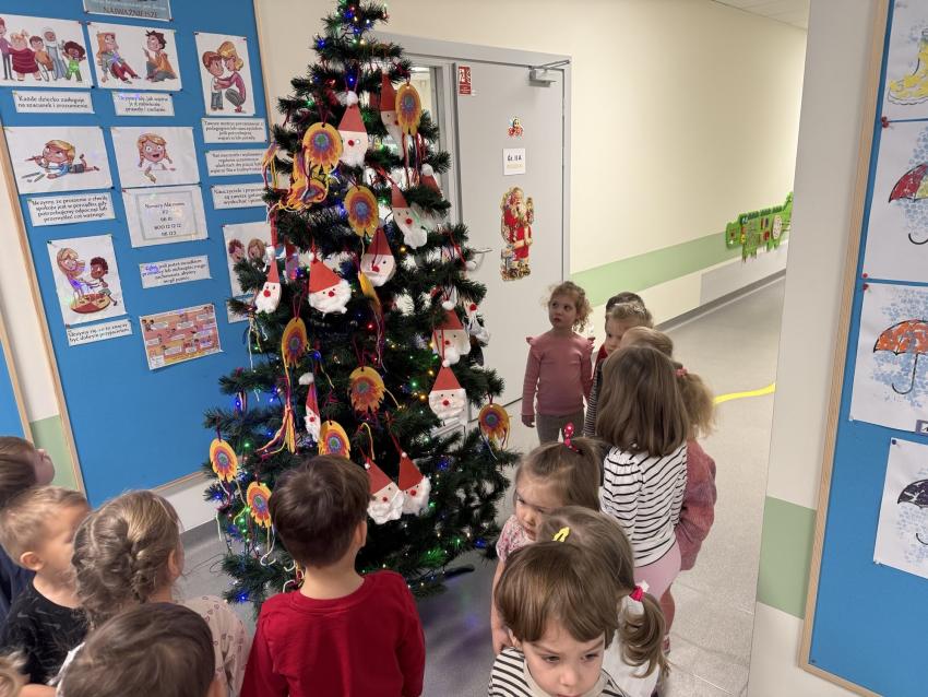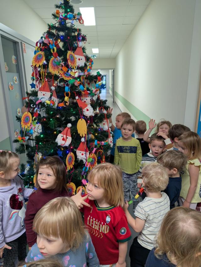 Coraz bliżej święta, więc zdolne dzieci z naszego przedszkola przyozdobiły choinkę na holu własnoręcznie wykonanymi ozdobami. Nasze świąteczne drzewko wygląda przepięknie. Również na salach pojawiły się choinki ubrane przez dzieci. Więcej zdjęć w zakładce Galeria: Choinko piękna jak las... - ubieranie świątecznych drzewek cz.II