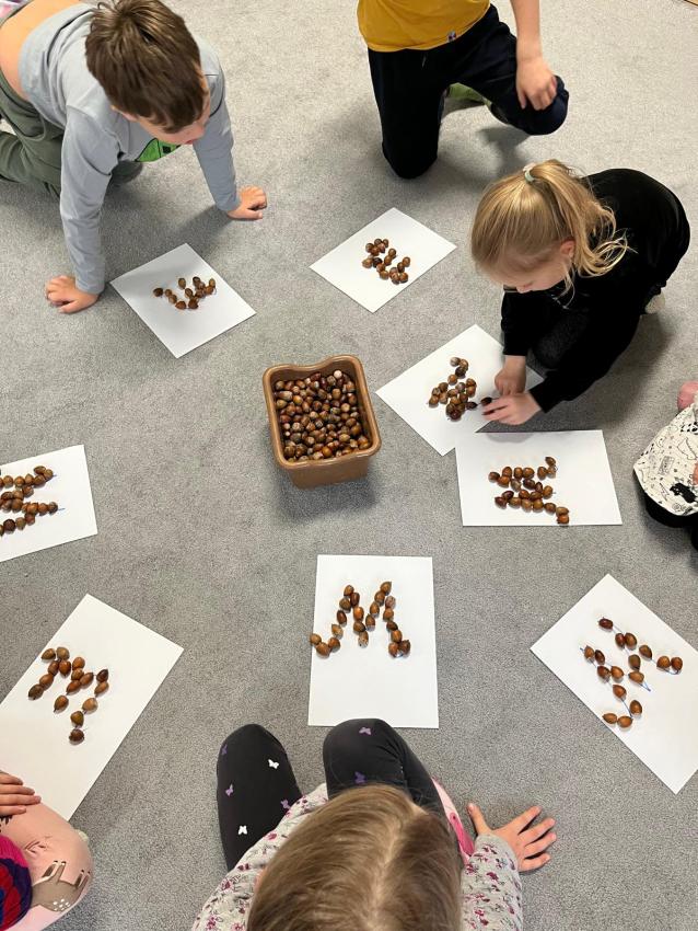 Dzieci z zerówki poznawały litery i cyfry wykorzystując różne metody i materiały. Więcej zdjęć w zakładce Galeria: Poznajemy litery i cyfry- Jeże cz.II